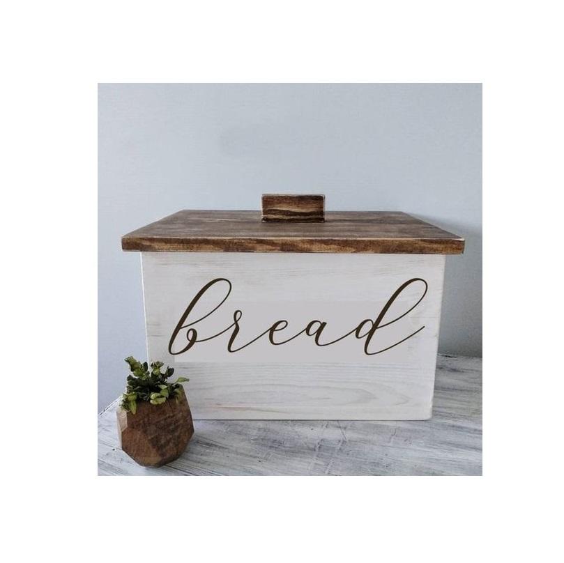 Handcrafted wooden bread box with spacious interior smooth sliding lid elegant finish ensuring bread stays soft fresh daily