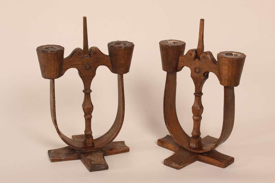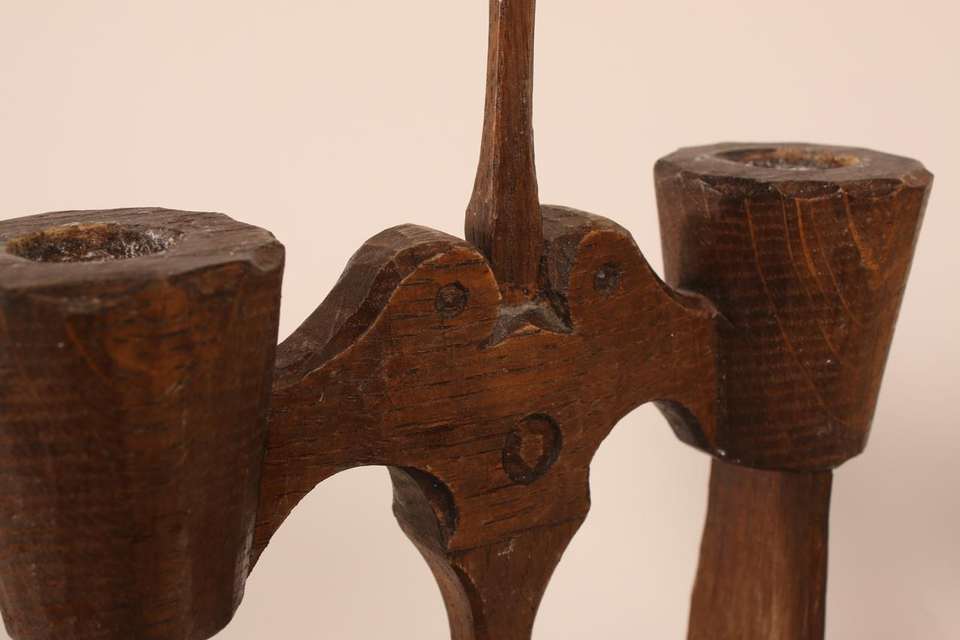 Handcrafted wooden candle holder with curved sail like form combining modern sculpture