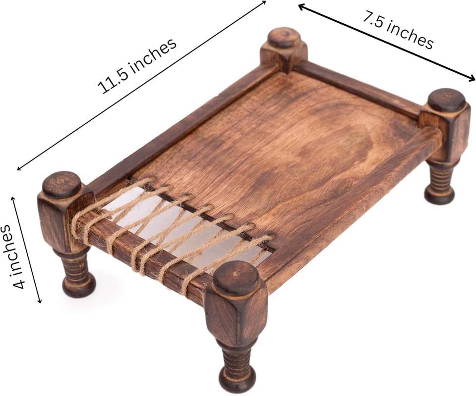 Handcrafted Solid Wood Jute Rope Traditional Charpai Serving Platter for Wedding Diwali Eco-Friendly Durable Rustic Food Display