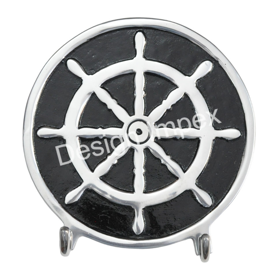 Handcrafts Ship Wheel Hooks & Rails Hot Selling Cast Aluminium Hook Elegant Design Metal Hooks With 2 Holders Home Decoration