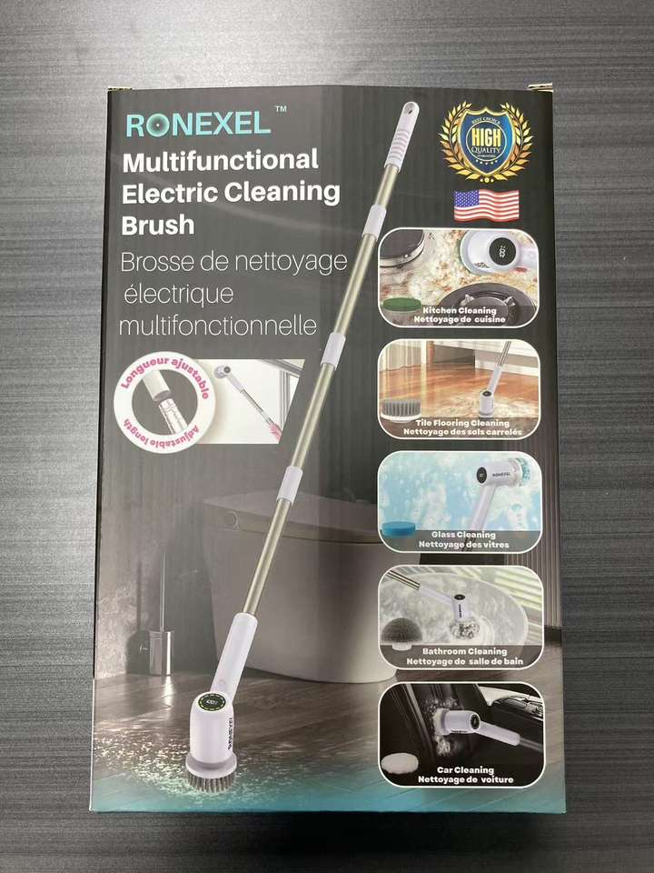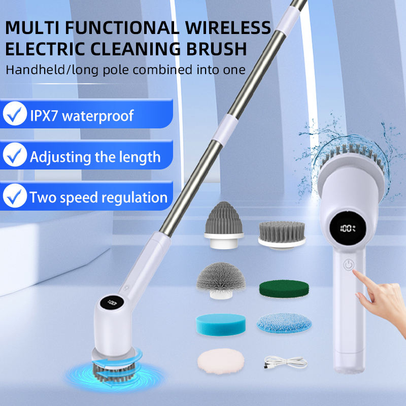 Handheld Cordless Plastic Power Scrubber Long Stainless Steel Handle Electric Spin Brush Waterproof Portable Bathroom Shower
