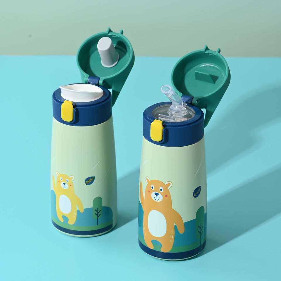 Handheld Double Wall 500ml Leak-Proof Portable Bouncy Lid Cute Straw Thermos