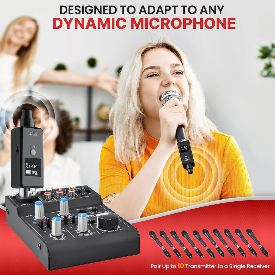 Handheld Microphone XLR Adapter System Multi-Functional UHF Wireless Transmitter Receiver for Music Wired Microphones