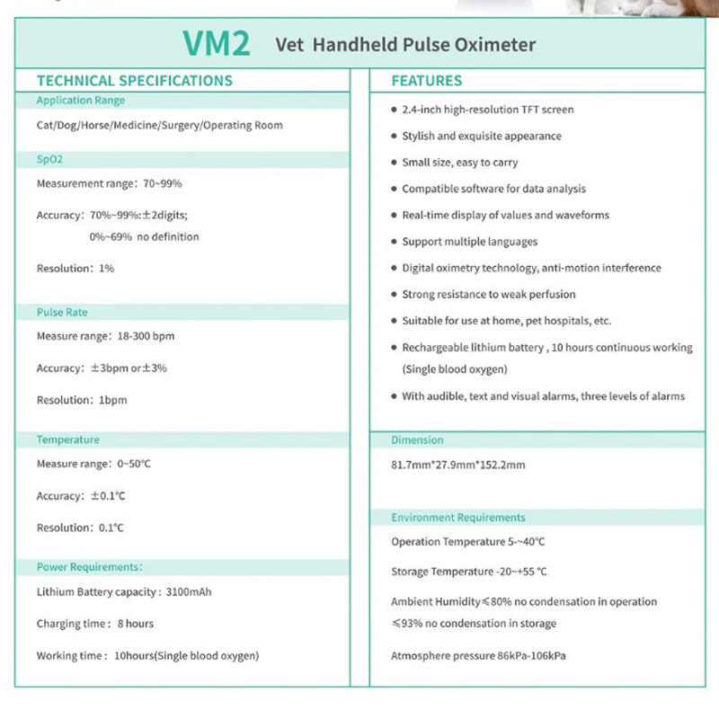 Handheld Veterinary Pulse Oximeter Built-in Lithium Battery English Label Export Version for Animal Hospitals Monitoring Devices