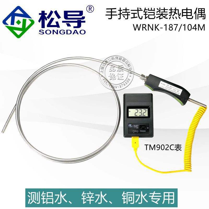 Handheld, large-handled, K-type armored thermocouple WRNK-187/104M temperature probe for zinc/aluminum molten high-temperature