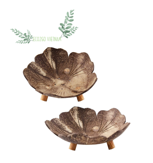 Handicraft Coconut Shell Soap Dish/Coconut Soap Tray for Using Drain Eco Friendly Bathroom Engraved Laser Logo by Eco2go Vietnam