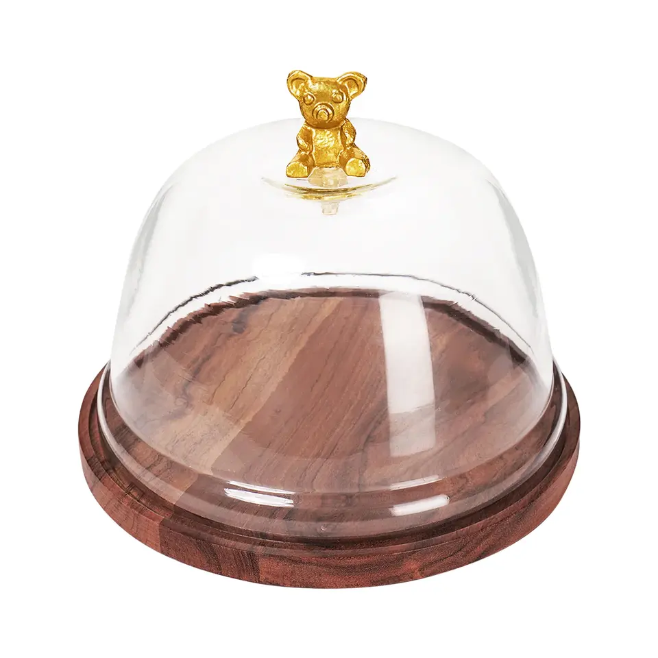 Handicraft Custom Metal Knob Wooden Cake Stand With Glass Dome Manufacturer Wholesaler Premium Home & Decoration Factory