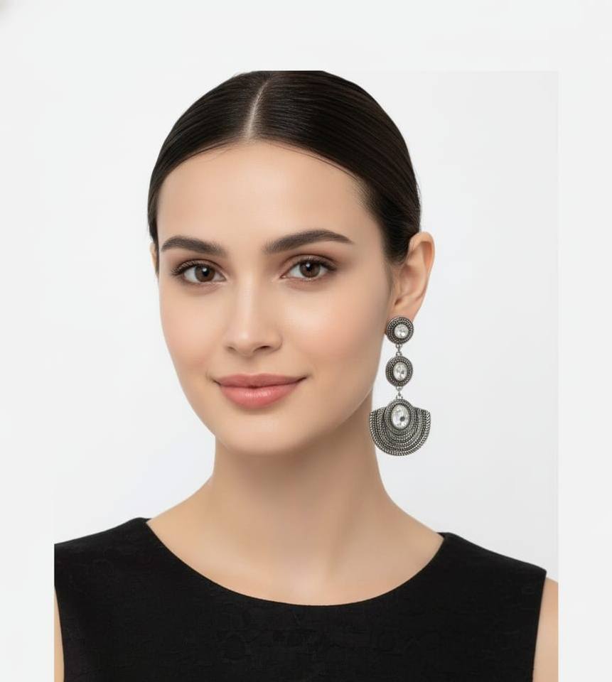 Handicraft Home Most Selling Luxury Oxidized Silver Natural Stone Ethnic Drop Jhumki Earrings for Party Wedding Gift Wear Best