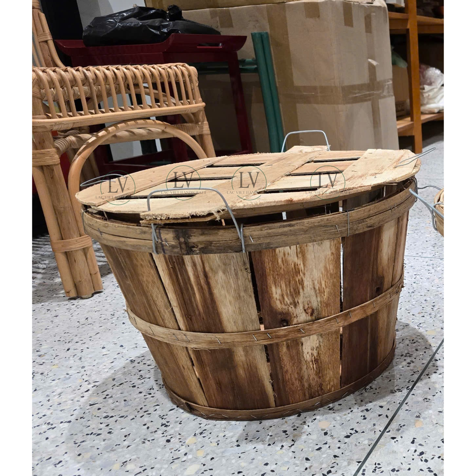 Handicraft Large Round Wooden Crab Bushel Baskets From Vietnam Water Hyacinth Material with Circle Shape Handles for Apples