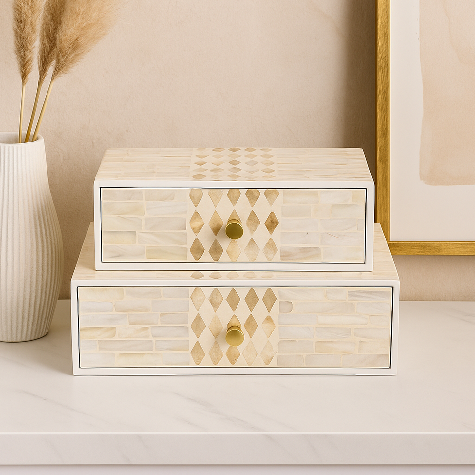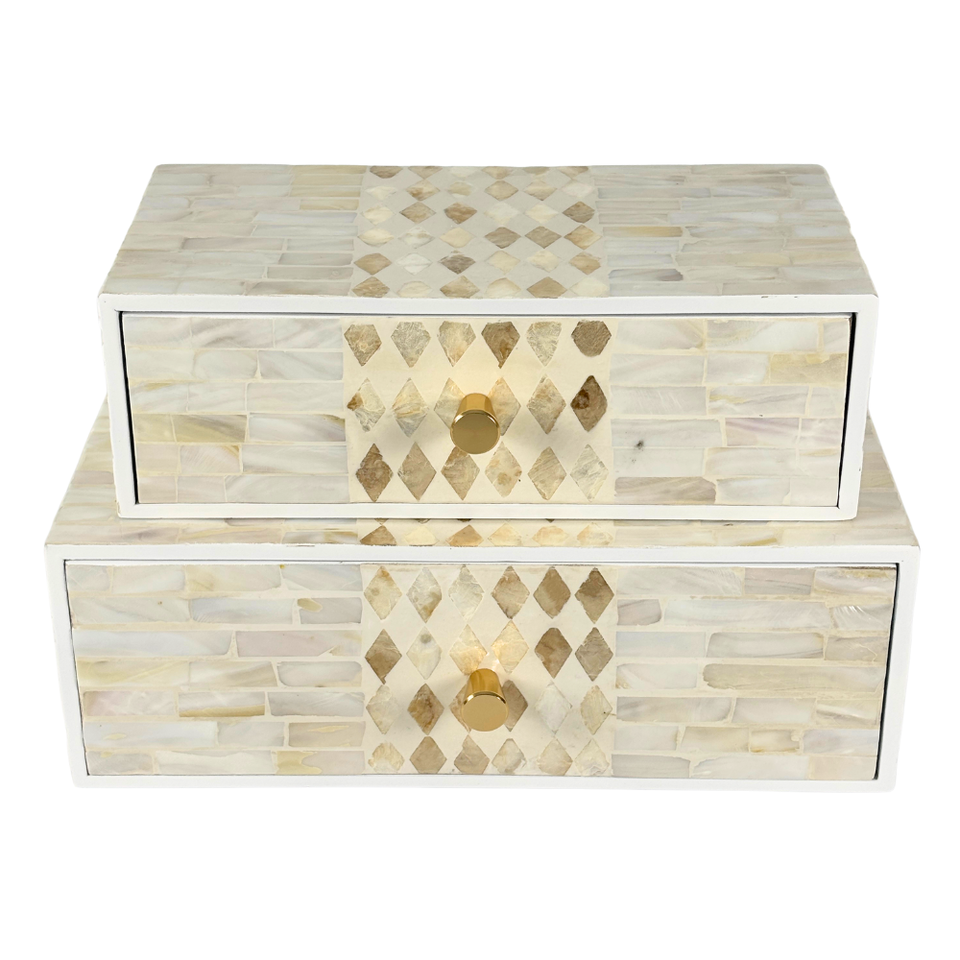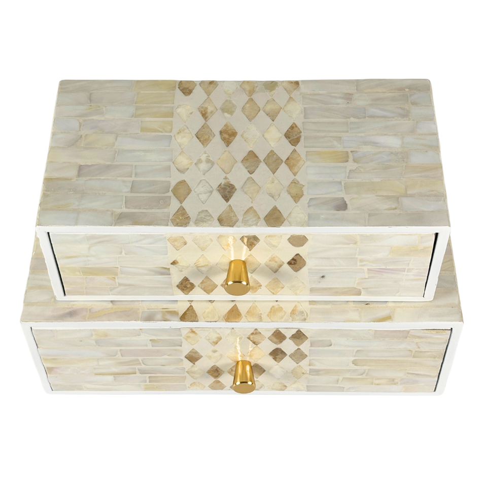 Handmade Capiz Mother of Pearl Inlay MDF Box Set Rectangular Canarium Pattern Jewelry Organizer for Home Decor Storage