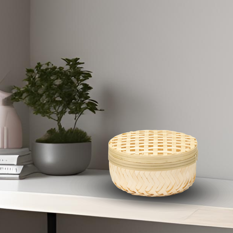 Handicraft Organizer Natural Material Boxes With Lid Hand Woven Bamboo for Gift Decoration Accessories Snacks, Jewelry Storage