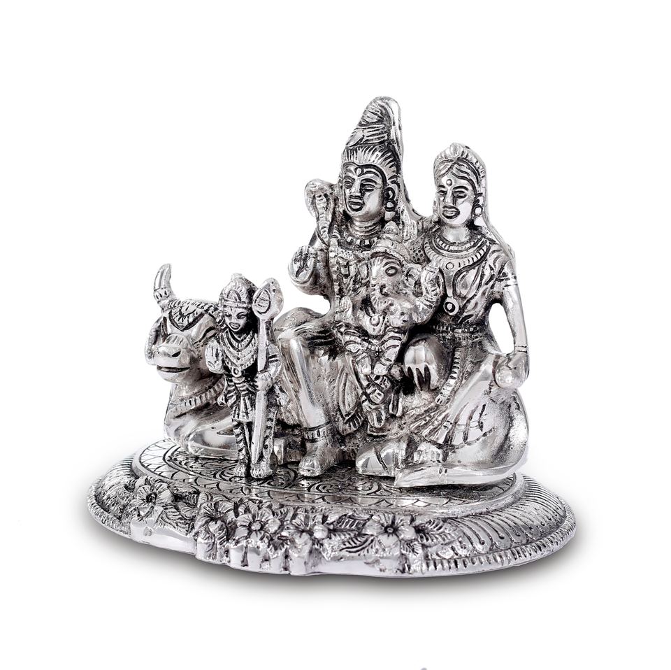 Handicraft Silver Plated Shiv Parivar Lord Shiva Goddess Parvati Ganesha and Kartikeya Idol for Home Decoration Diwali Gift