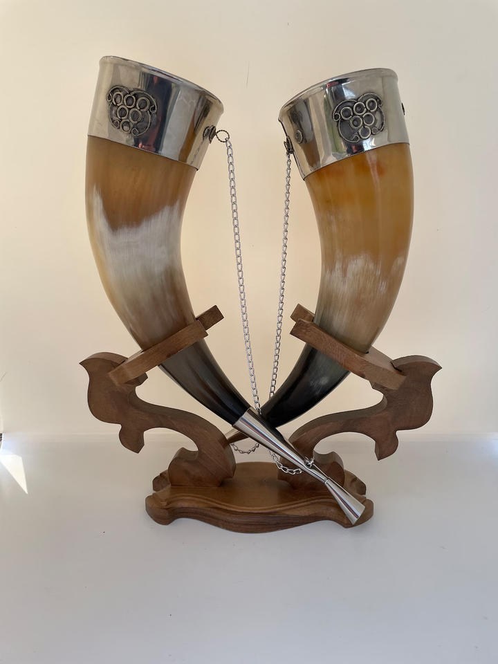 Handicraft Viking Feast Set with Polished Animal Beer Stein Glass and Hand Carved Buffalo Horn for Festivals