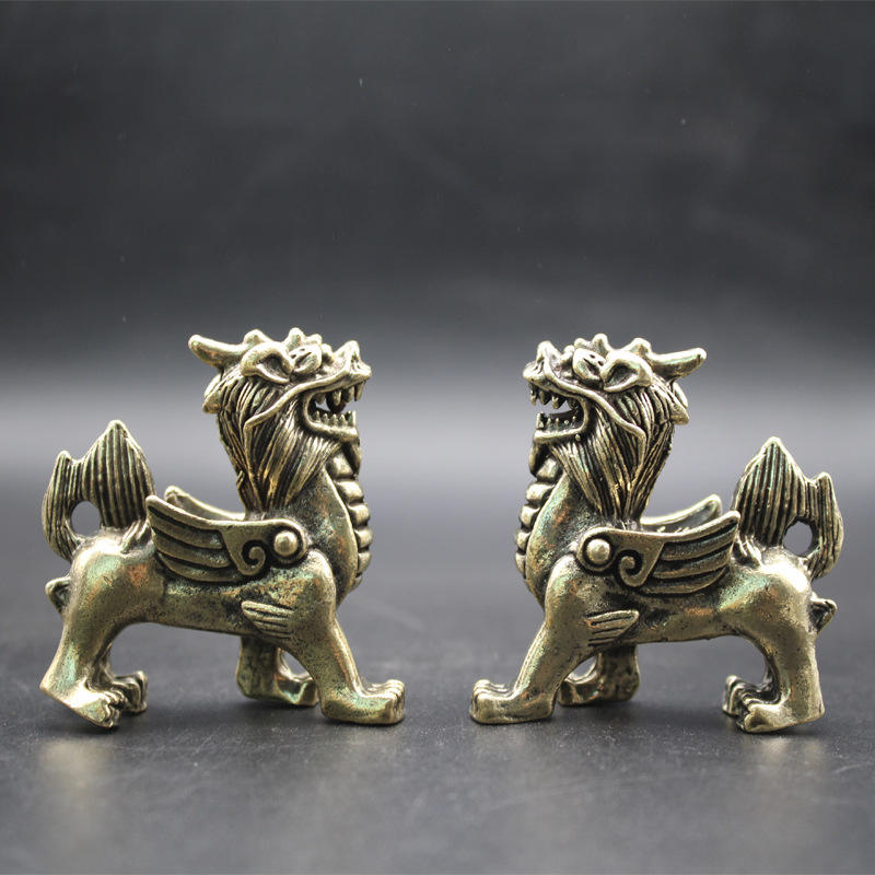 Handicrafts Brass Ornaments a Pair of Brass lion unicorn Statues.
