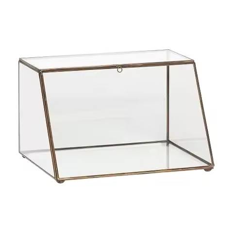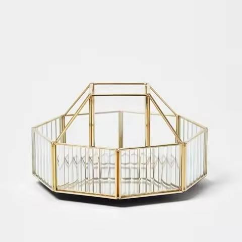 Handicrafts Crystal Glass Makeup Organizer Brass Metal Frame Cosmetics Storage Box Jewelry