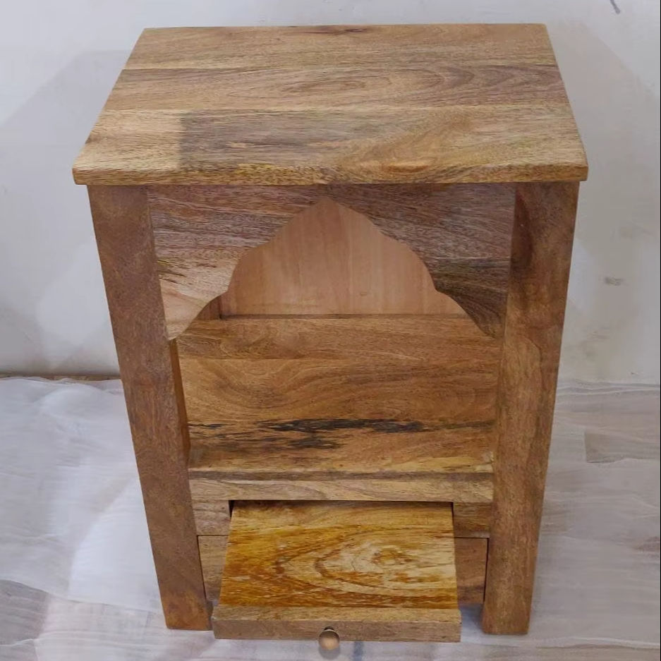 Handicrafts Modern Design 100% Natural Made Wood Pooja Mandir With 1 Drawer For Home Puja Room For Diwali & Wedding Celebrations