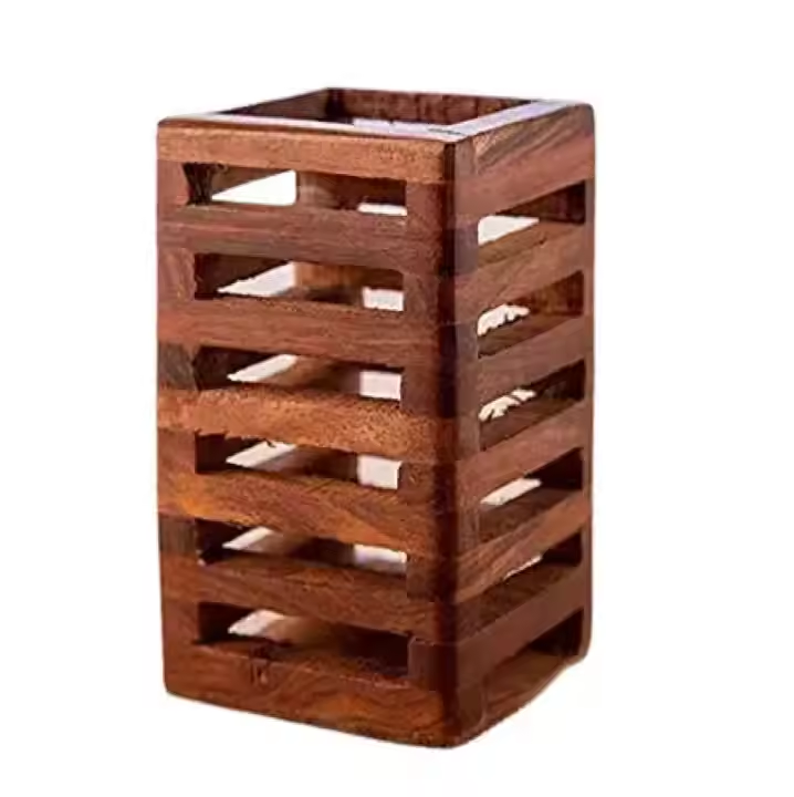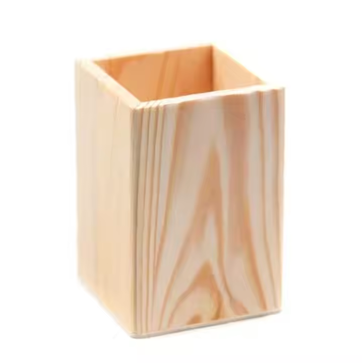 Handicrafts Square Shape Wooden Pen Holder Wholesale High Quality Wood Cup Holder and Pen With Low Prices by Crescent Crafts