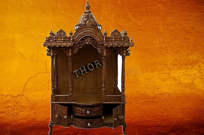 Handicrafts Wooden Temple Pooja Mandir/Pooja Mandap/Temple Brown Polished Home & Office Decor