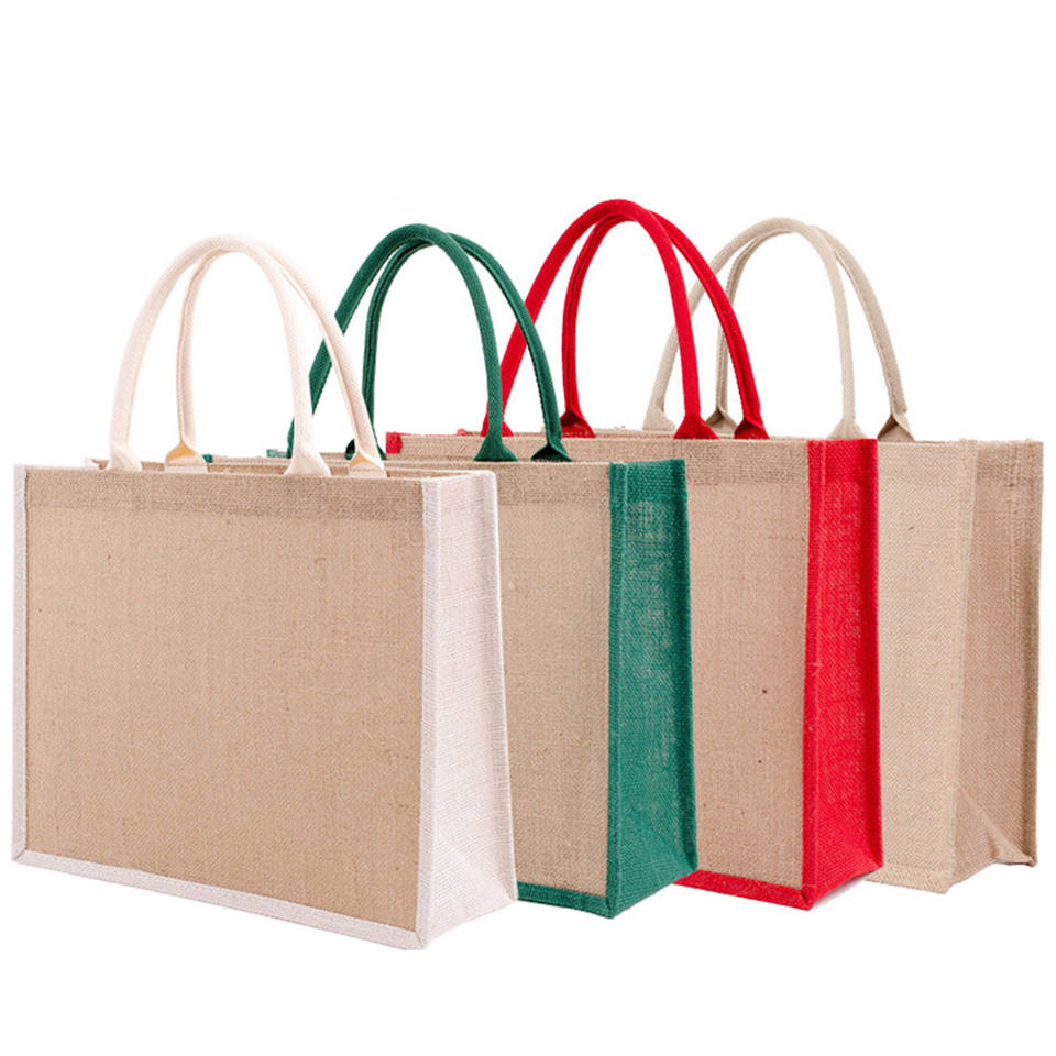Handle Shopping Tote Bag Made of Printed Jute Can Be Carried Out and Custom logo Color