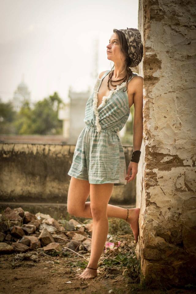 Handloom Natural Cotton Jumpsuit Short Khadi Boho Earthy Ethno Tribal with Fringes Turquoise Green Tank Style Short Length