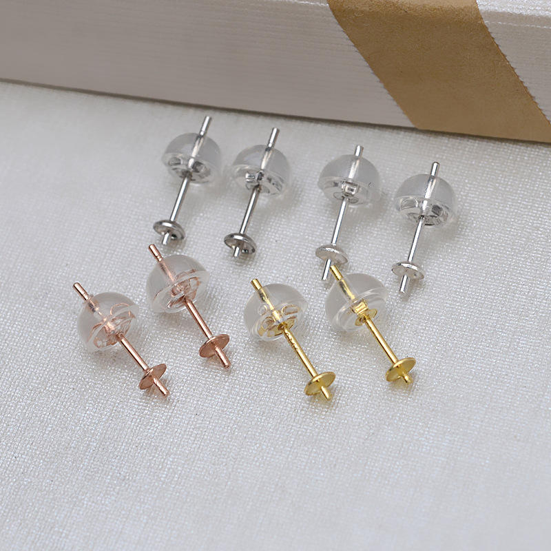 Handmade 10-Pairs DIY Accessories Simple S925 Silver Ear Needles Alloy Empty Holders for Pearl Jade Agate 1560 in Bag Packed