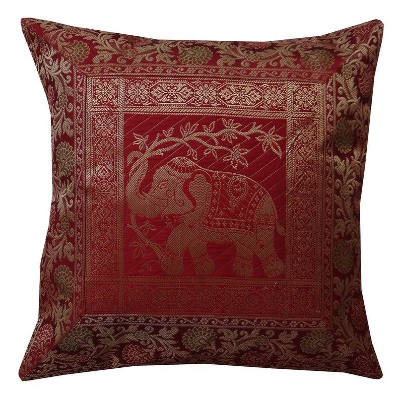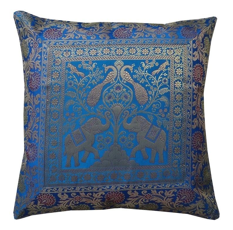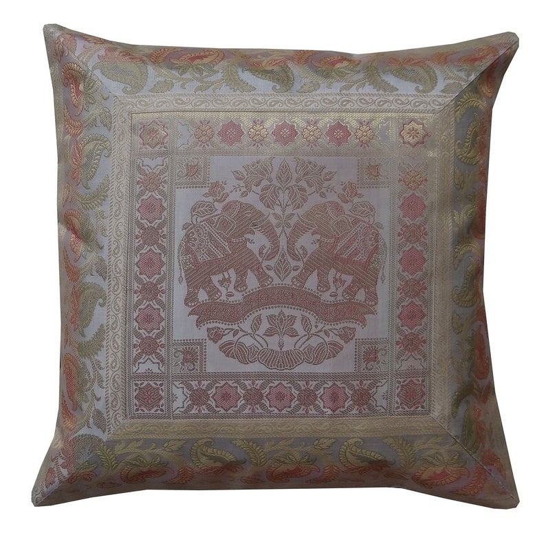 Handmade 100% Brocade Silk Cushion Covers Indian Banarsi Silk Pillow Case with Woven Embroidered Pattern Square Shape