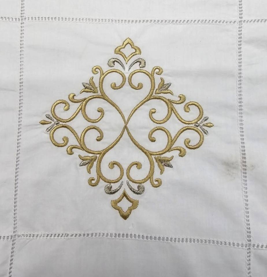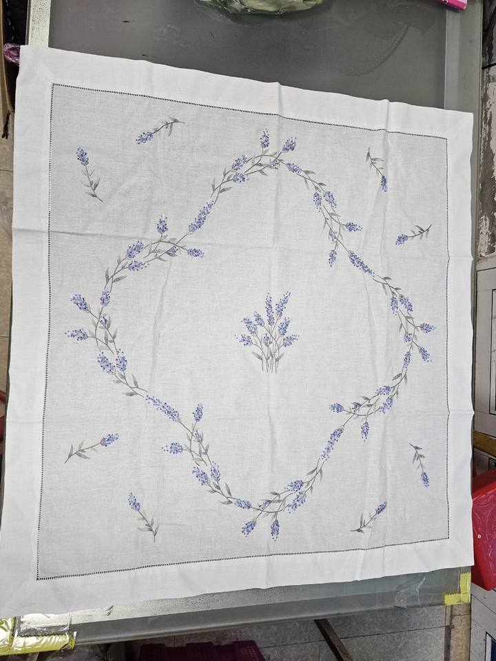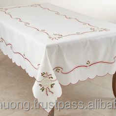 Handmade 100% Cotton Elegant Tablecloth With Little Vine Pattern Floral Embroidery for Home Dining or Event Decor