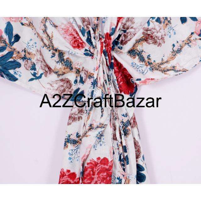 Handmade 100% Cotton Floral Midi Kaftan Dress V-Neck Short Sleeve Sexy Bodycon Silhouette Tassel Ruffle Eco-Friendly Party Wear