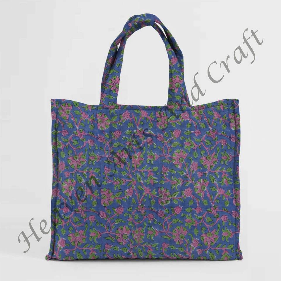 Handmade 100% Cotton Quilted Square Quilted Tote Bag Indian Block Print Shoulder Quilted Bag Market Quilted With Stylish Design