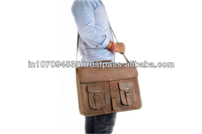 Handmade 100% Genuine Leather Briefcase Bag Front 2 Pocket Messenger Cross Body Laptop Shoulder Bag for Office And Business Uses