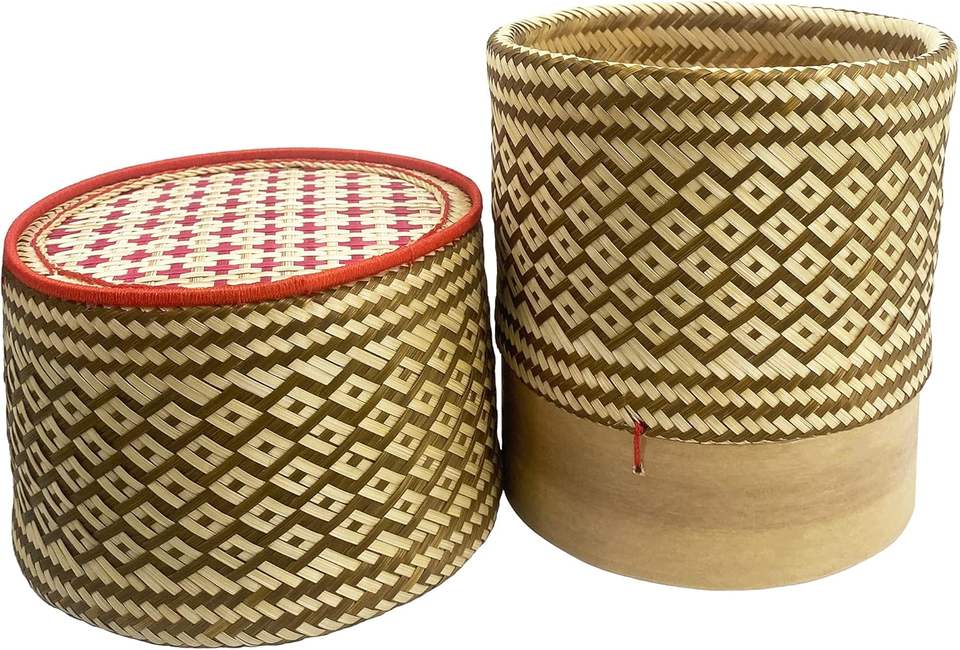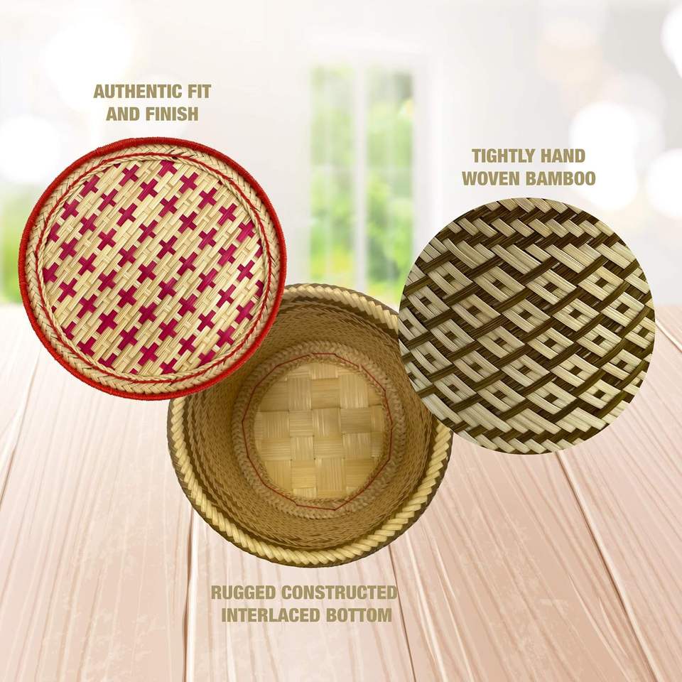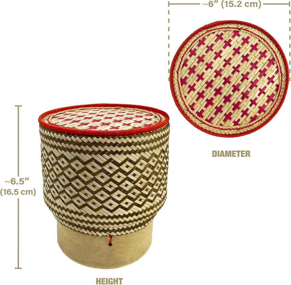 Handmade 100% Natural Bamboo Sticky Rice Serving Basket | Authentic Woven Food Container with Lid for Restaurant Home Decor