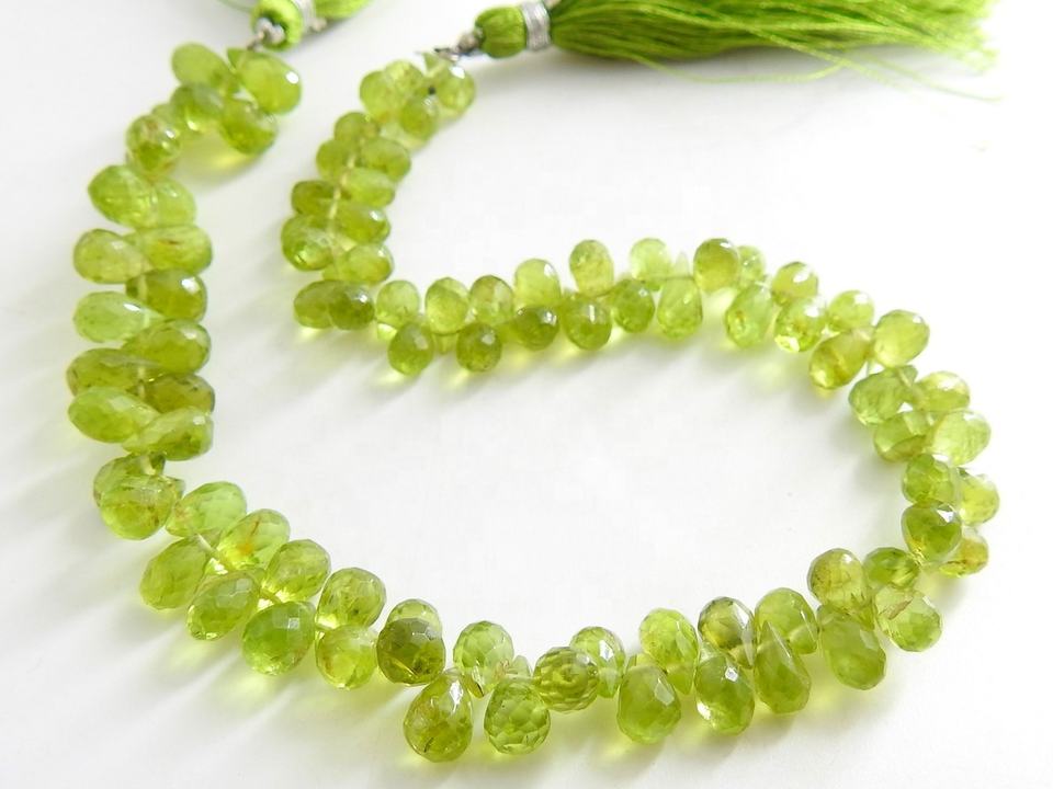 Handmade 100% Natural Peridot Faceted Drop Bead 7 Inch Long 4-7 MM Approx Green Loose Crystal Gemstone for Jewelry Makers