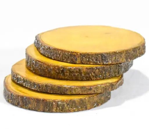 Handmade 100% Natural Wood Rustic Tea SetCoasters Round Wooden Natural Log bark Wooden Slices for Craft Coaster Set of 4 with