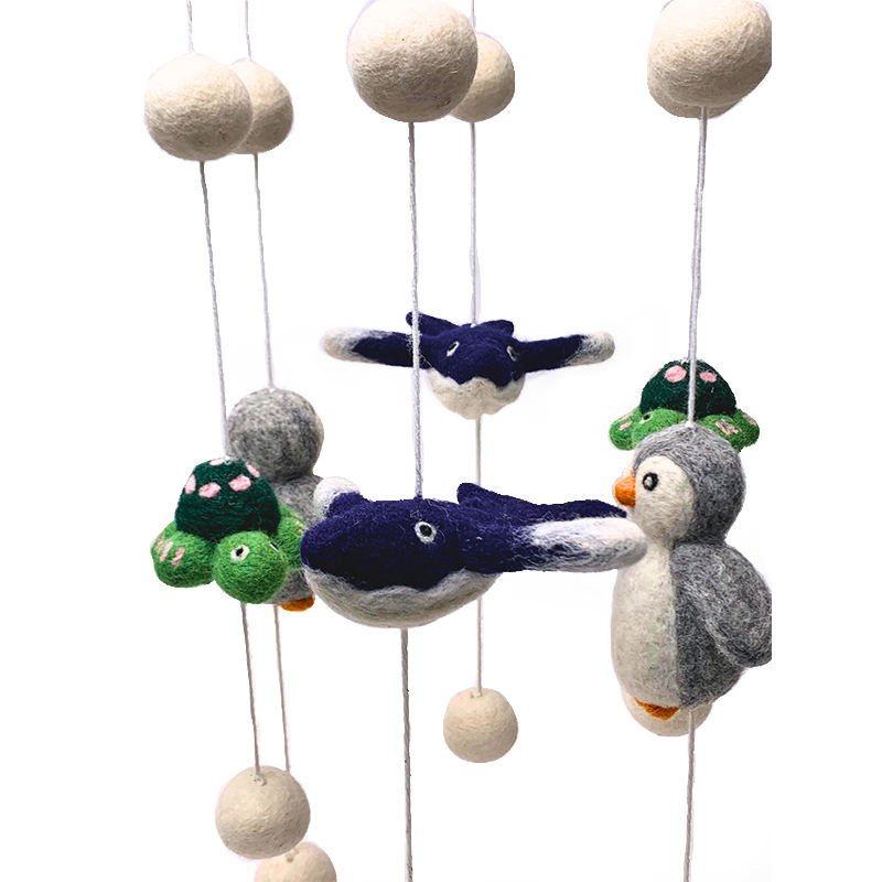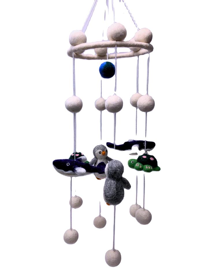 Handmade 100% New Zealand Wool Baby Mobiles Nursery Musical Cot Crib Star Featuring Animals Penguin Shark Turtle from Nepal