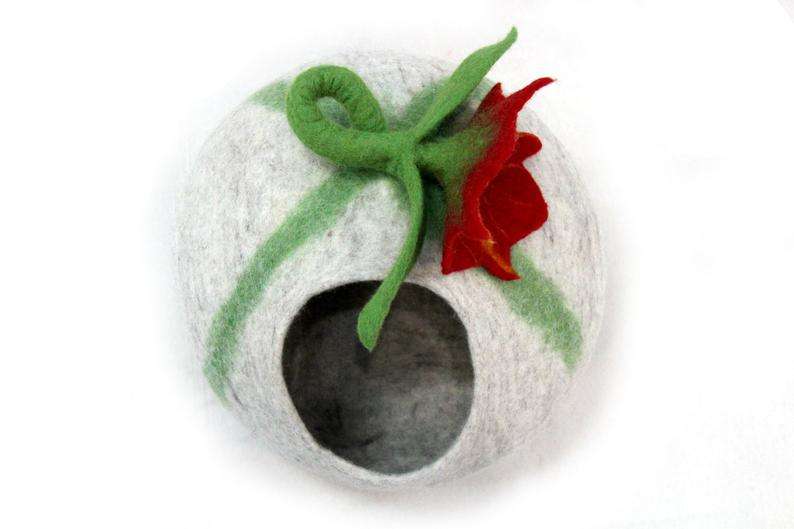 Flower Design Gray Wool Cat Cave