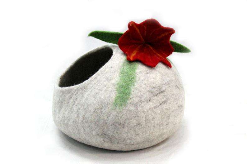 Handmade 100% New Zealand Wool Pet Bed Eco-friendly Soft Cat Cave Designed Flower Solid Pattern Grey Color All Seasons
