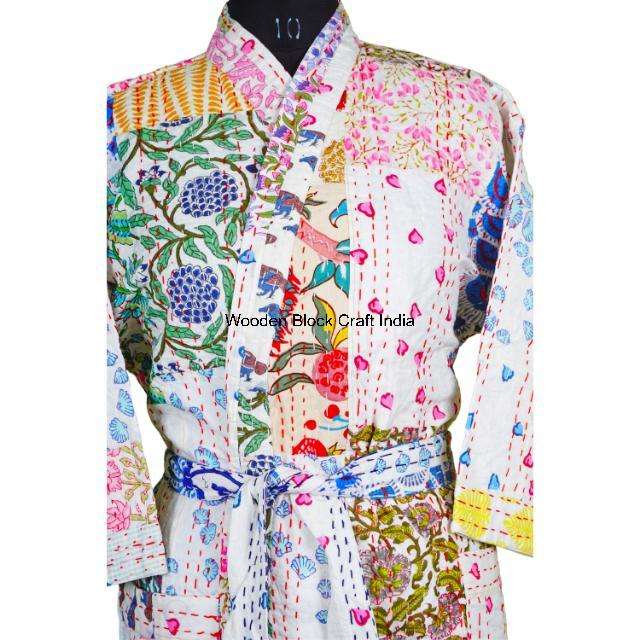 Handmade 100% Organic Cotton Kantha Quilted Jacket Women Summer Kimono Style Long Winter Cardigan Spring Eco-Friendly
