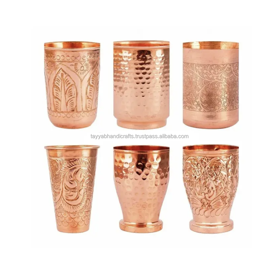 Handmade 100% Pure Copper Cup Glass Copper Drink Glasses Mug for Table Office Home Gym Bar Resort With Best Quality From India