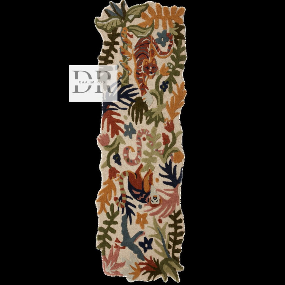 Handmade 100% Wool Modern Luxury Hand Tufted Rug Large Loop Cut Design Wild Animals Print for Home Bedroom Office Hall Floor Use