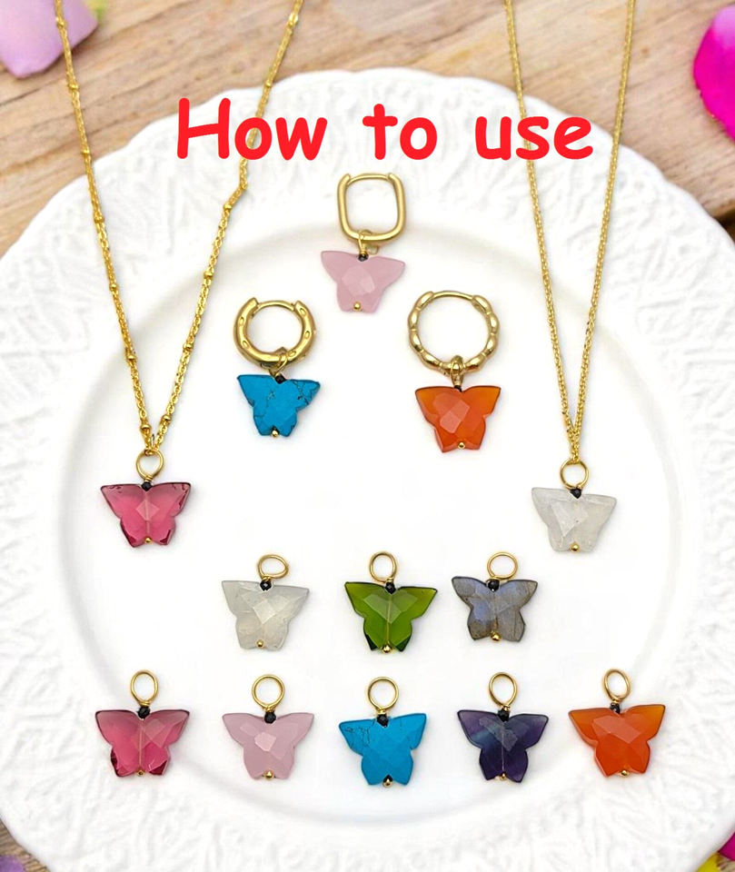 Product Name:Handmade 10x12mm Gemstone Butterfly Carving Charm