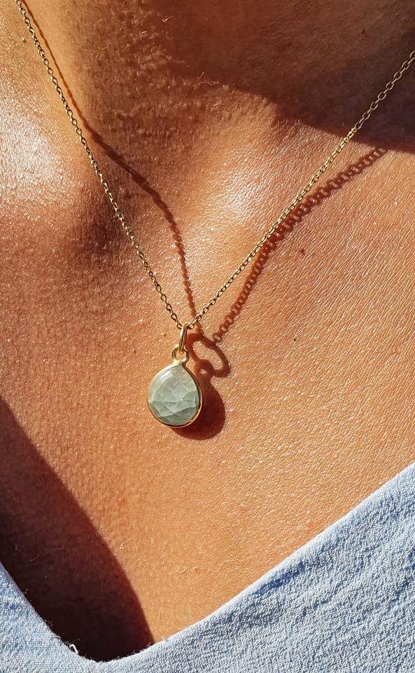 Handmade 12mm Aquamarine Heart Necklace in 925 Sterling Silver with Gold Plating Smooth Gemstone Fashion Pendant for Weddings