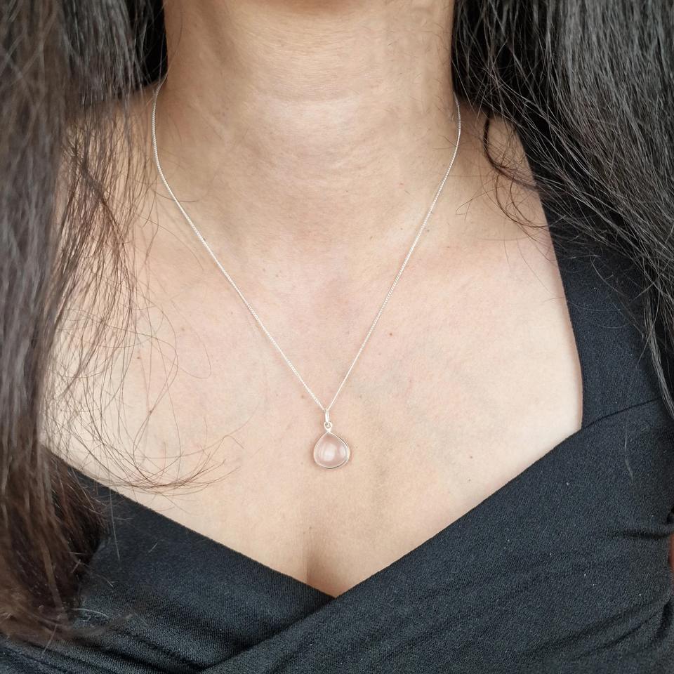 Handmade 12mm Rose Quartz Heart Necklace in Silver-Plated Bezel, Smooth Gemstone Necklace Jewelry Gift