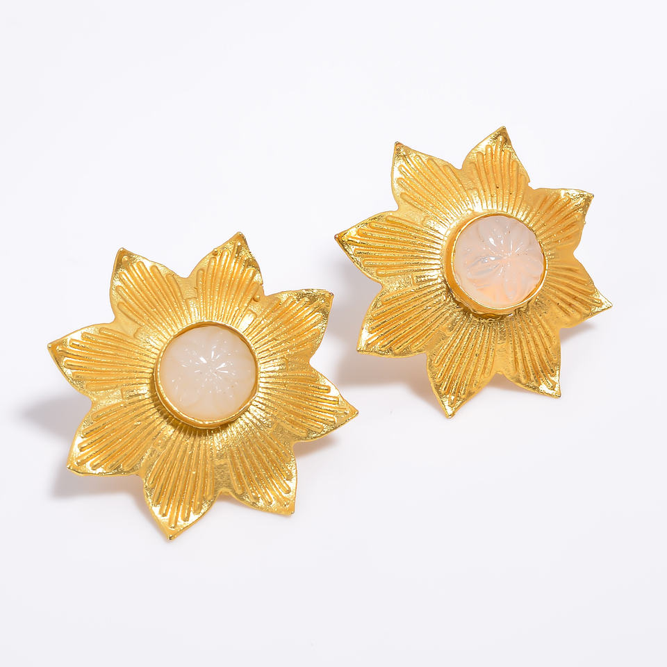 Handmade 14K Gold Plated Brass Earrings Floral Sun Design Fashion Jewelry for Women and Girls for Christian Weddings