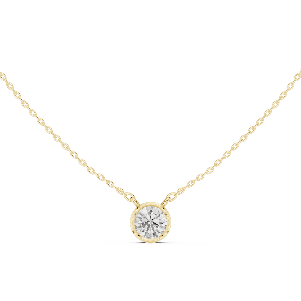 Handmade 14K Rose Gold Bezel Set Round Natural Diamond Pendant Elegant Minimalist Circle Charm Necklace Fine Jewelry Bulk