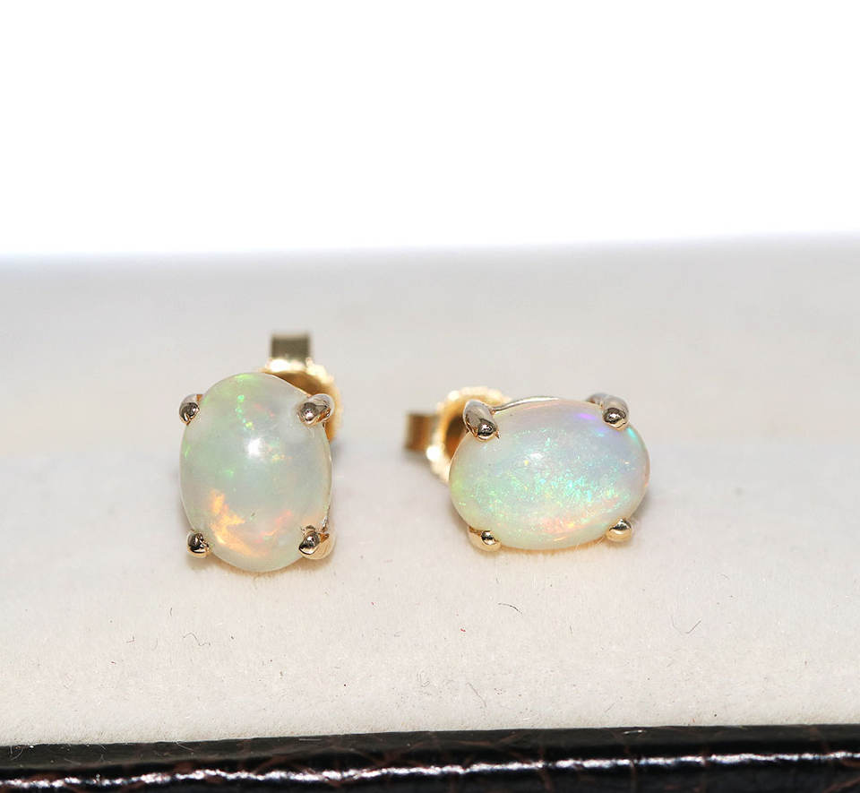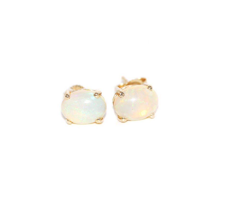 Handmade 14k Solid Yellow Gold Ethiopian Opal Stud Earrings Wedding Anniversary Party Jewelry Women's Gift Wholesale Supplier