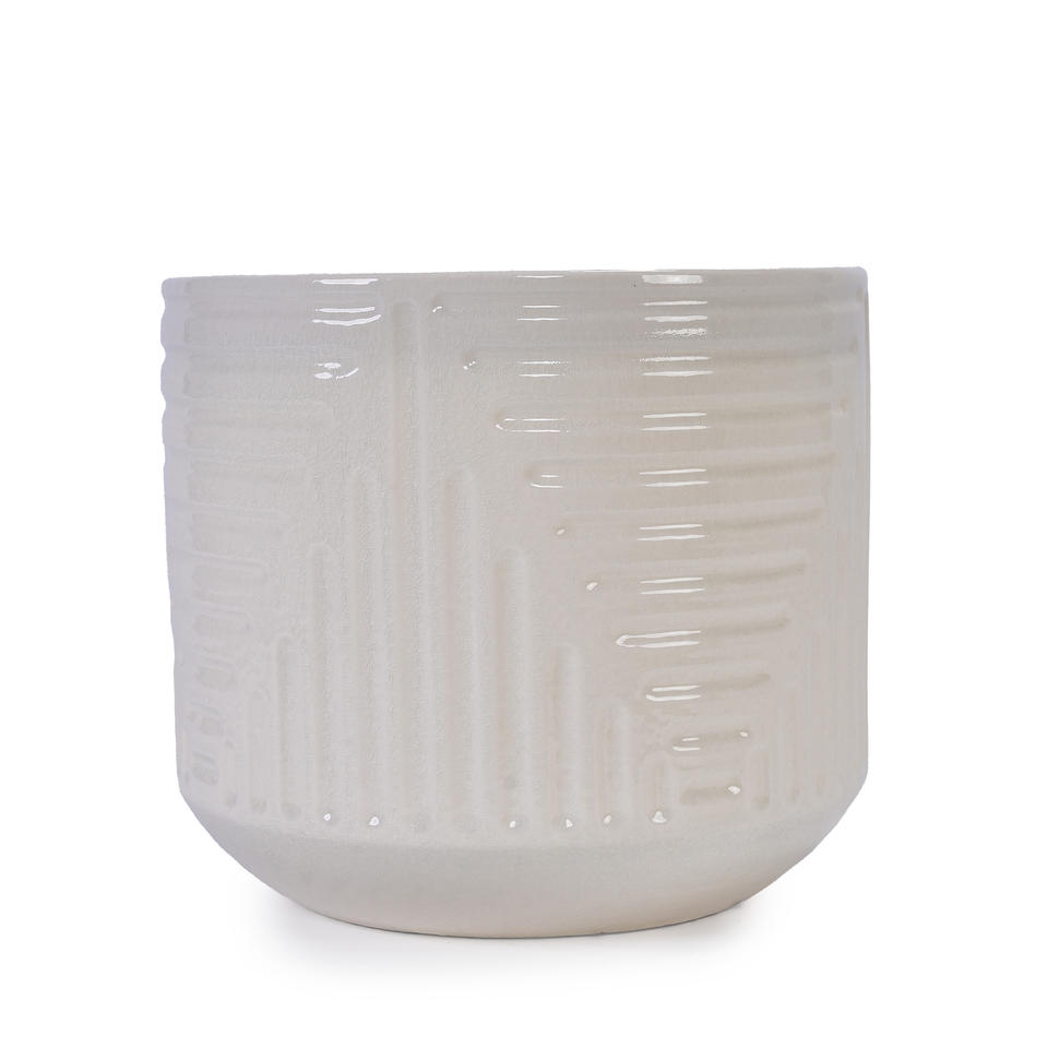 Handmade 16-Inch Cream White Ceramic Planter Pot with Geometric Pattern Monstera Deliciosa Fiddle Atlantic Design Style