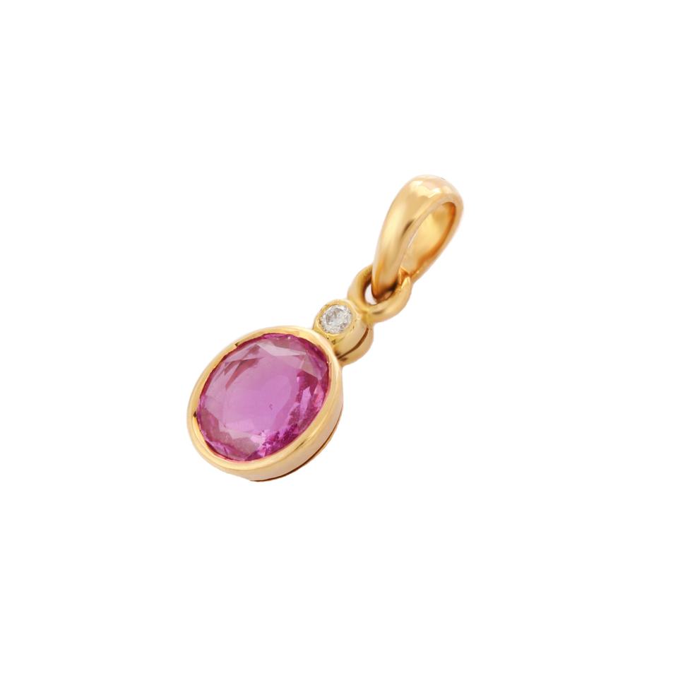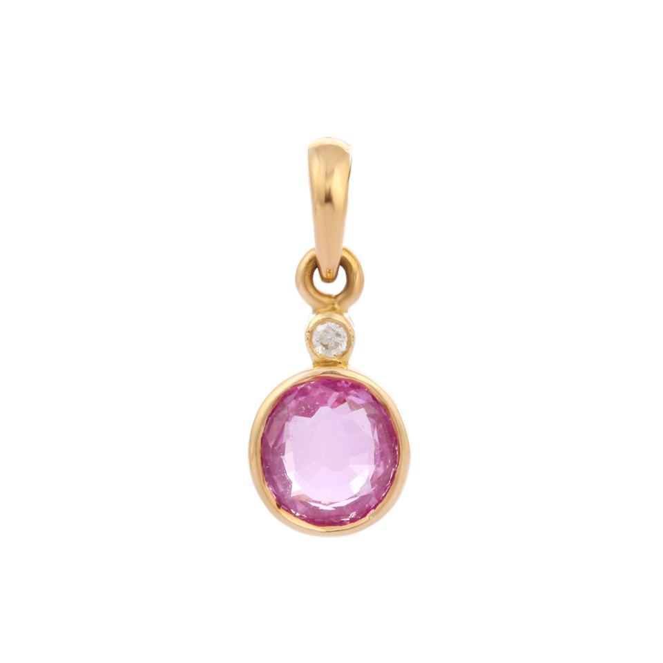 Handmade 18K Solid Yellow Gold Pendant Natural Pink Sapphire Fashionable Oval Gemstone Fine Jewelry Birthday Gift for Parties