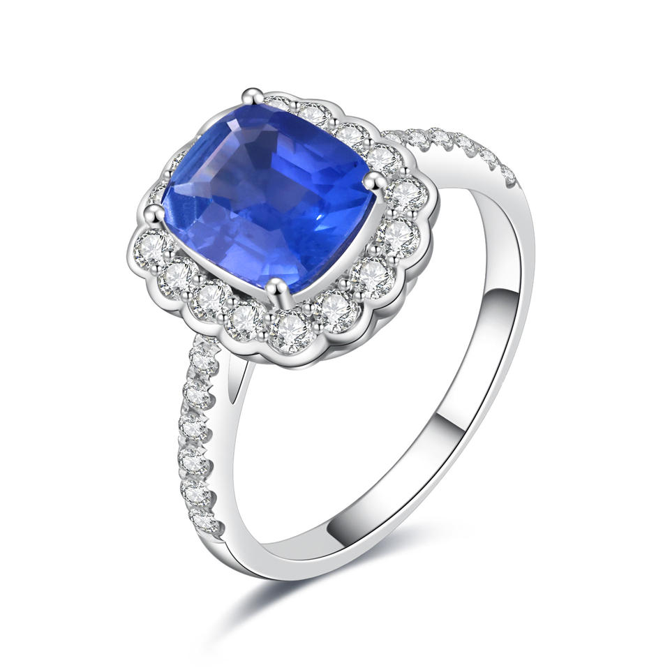 Handmade 18K White Gold Engagement Ring High Quality IGI Certified Lab Grown Sapphire Elegant Princess Cut Wedding Gift for Girl
