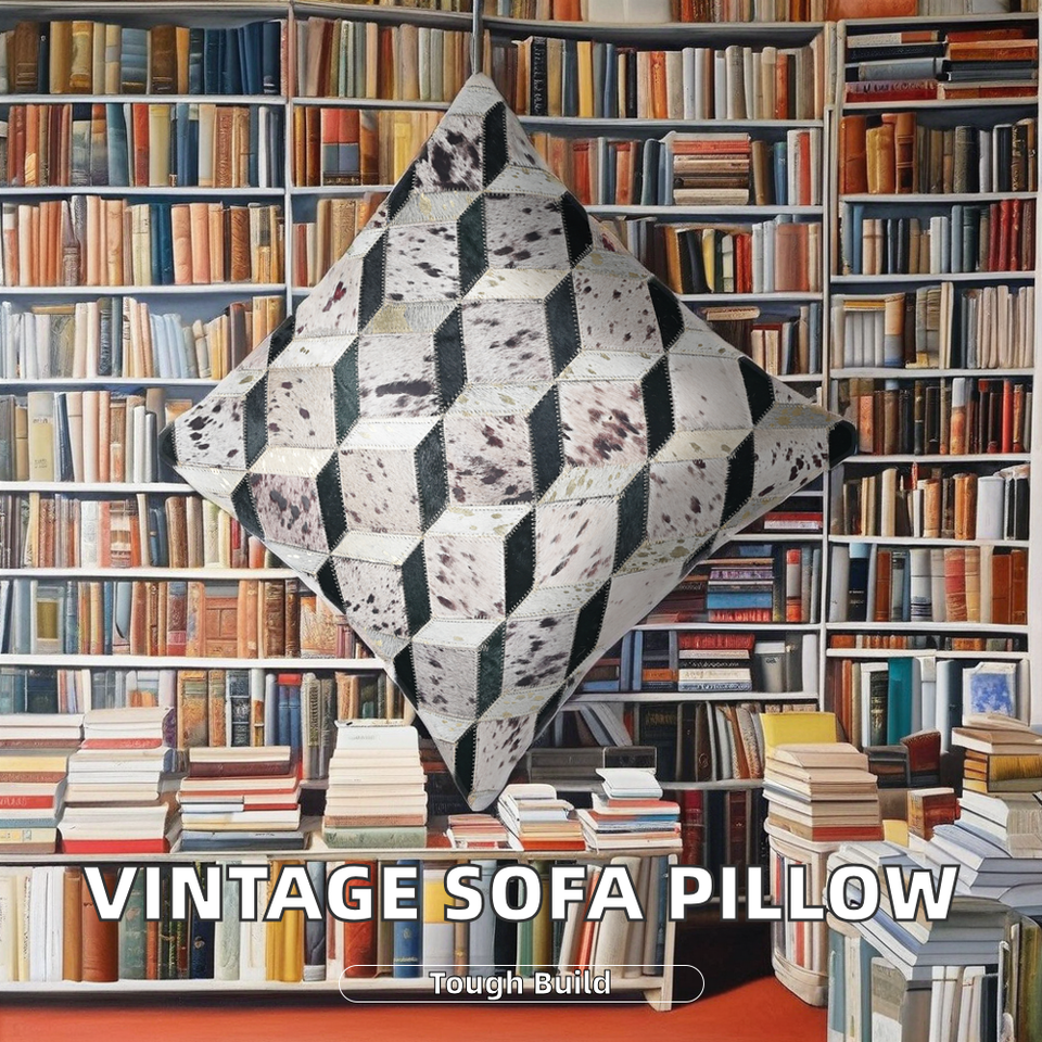 Handmade 19\" Vintage Cowhide Leather Cushion Covers New Artwork Embroidery Sofa Pillows Home Hotel Decor Patchwork Technique