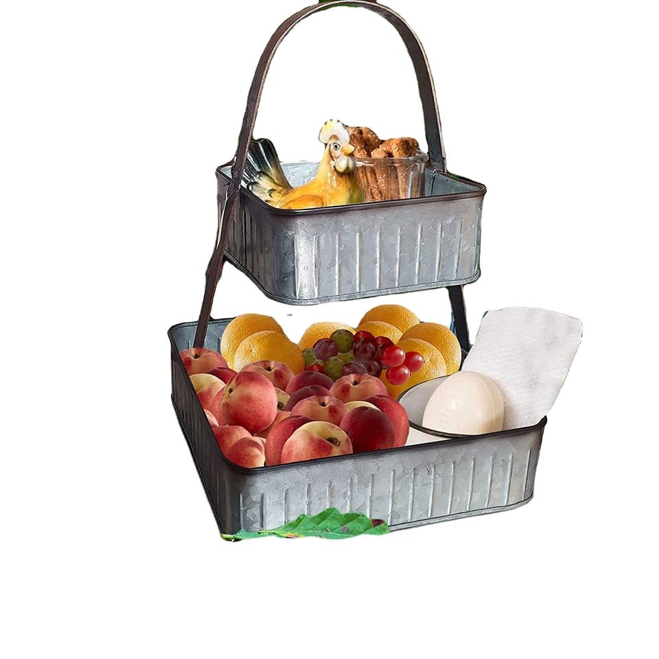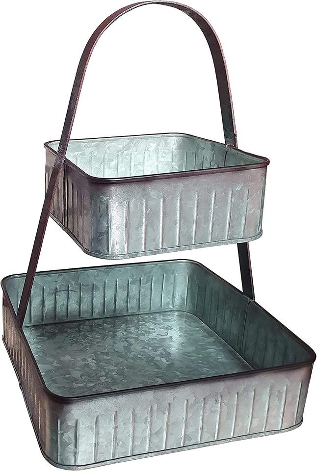 Handmade 2-Tier Galvanized Metal Cake Stand with Unique Design Perfect for Serving Cupcakes Elegant Desserts Events Gatherings
